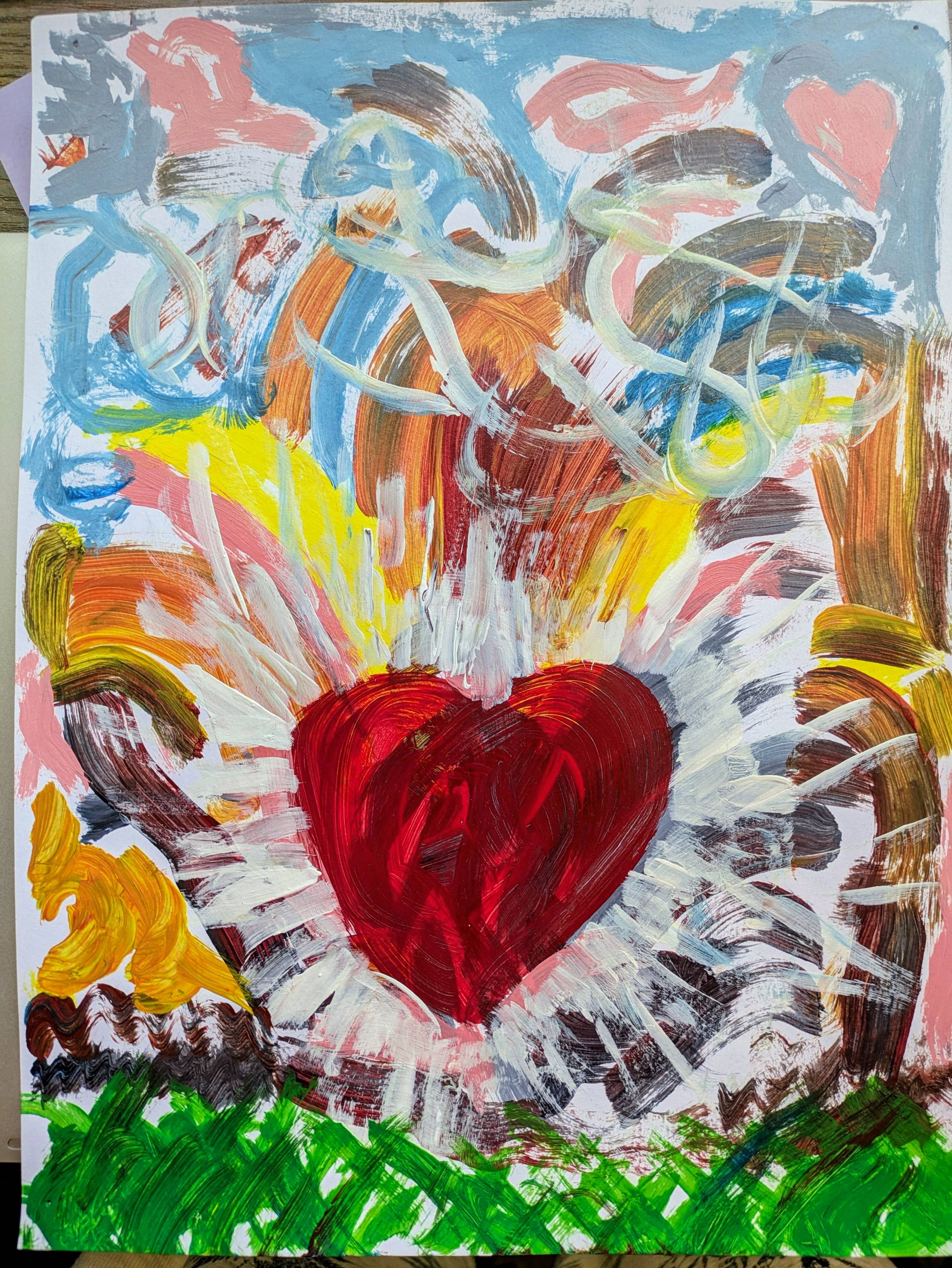 I didn’t paint the cover art for this purpose—one day this summer, my youngest (a true visual artist) and I got out the acrylics. I decided to just start painting (the way I write poems) and see what would manifest itself. This messy piece found its way to me. I love how it embodies the idea that beauty can also be messy, and that our hearts create the light within us that shines forth. 💜